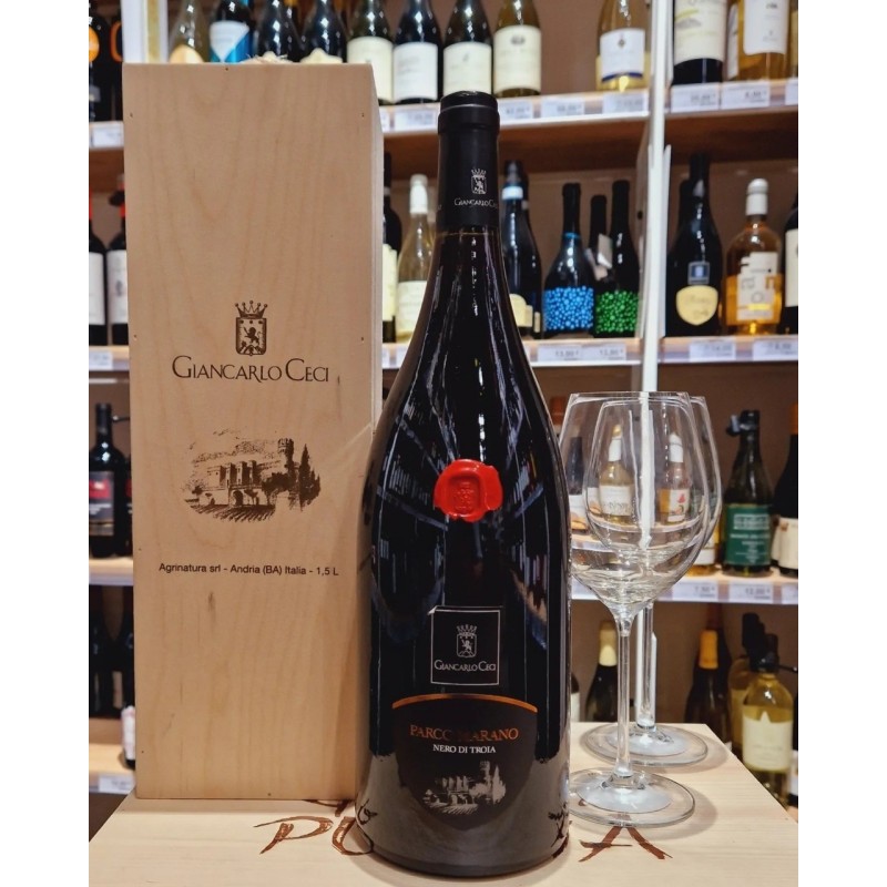 Giancarlo Ceci con le uve di Nero di Troia, da origine al Parco Marano. Utilizza il sistema di allevamento del cordone speronato.